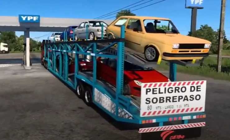 Fonction : Ajoute la semi-remorque Mosquito avec une charge exclusive de voitures argentines pour le transport.