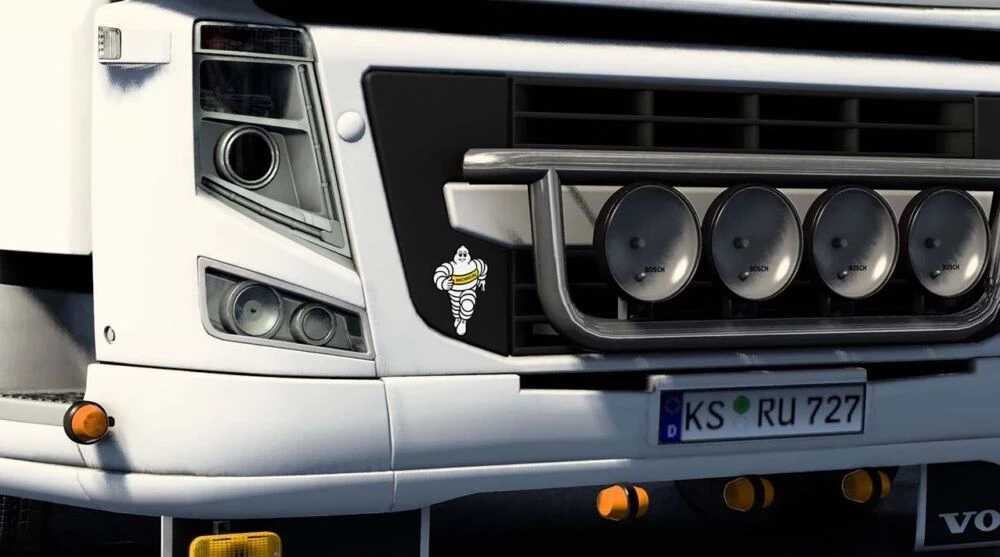180 variantes de garde-boue avant. 6 tailles : [50×18] [50×25] [50×30] [60×18] [60×25] [60×30]. 2 finitions : noir ou avec une bande blanche de différentes marques (Daf, Volvo, Scania, etc.).