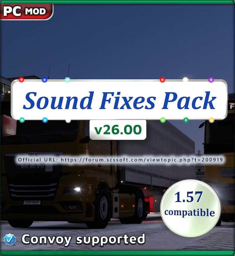 Ce mod ne remplace pas les sons individuels des camions des joueurs ; il peut donc être utilisé avec un nombre illimité de mods de sons de camions de votre choix.