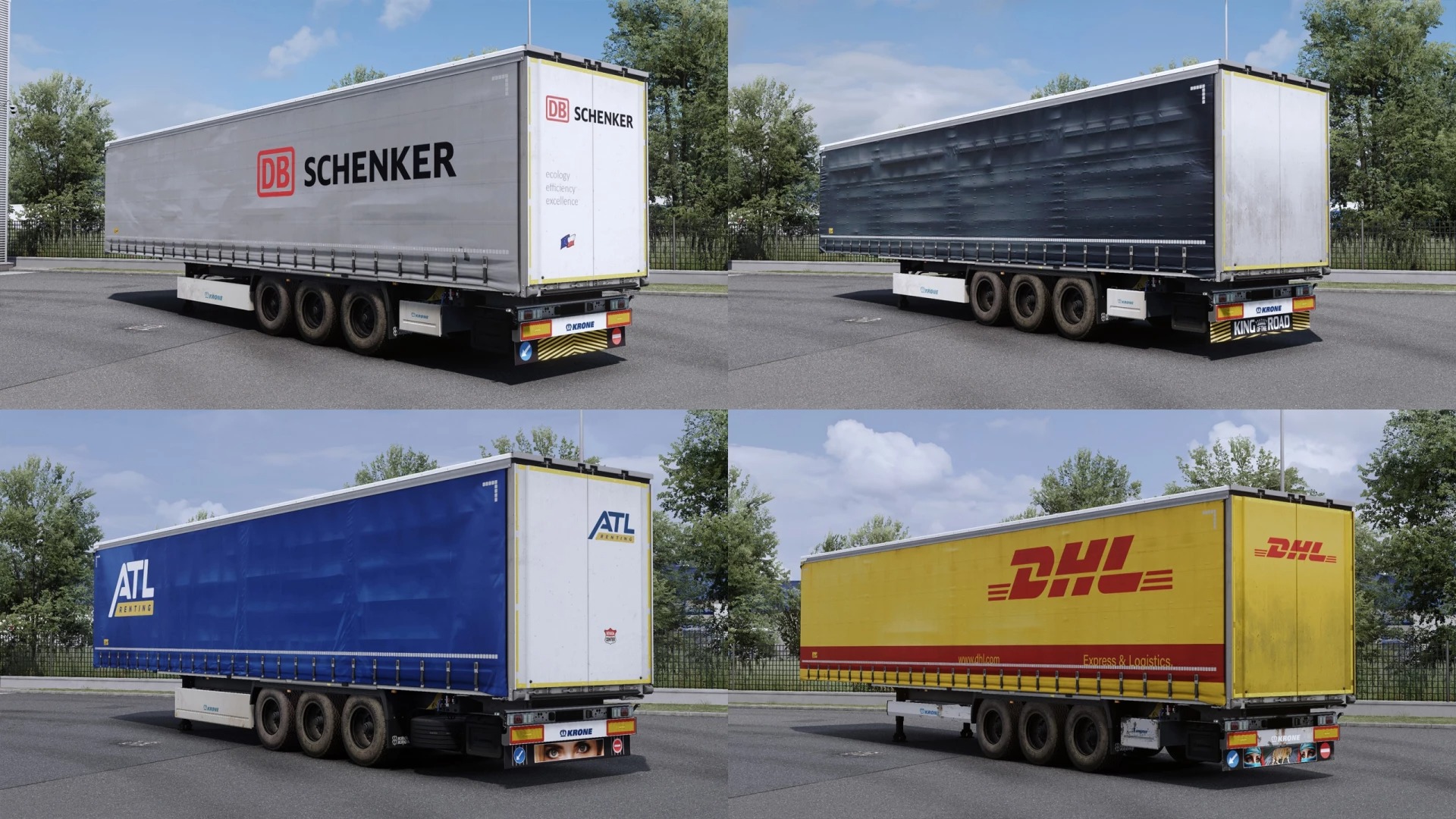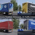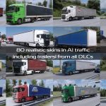 80 peintures réalistes pour les remorques apparaissant dans le trafic IA, y compris des peintures pour les remorques DLC Kassbohrer, Krone, Kogel, Schmitz, Tirsan et Wielton.