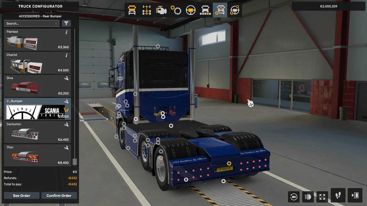 Compatible uniquement avec Scania R NG. Placez ce mod de skin au-dessus du pack PGRS d'Eugene et du pack de tuning Venus. L'ordre devrait être le suivant :